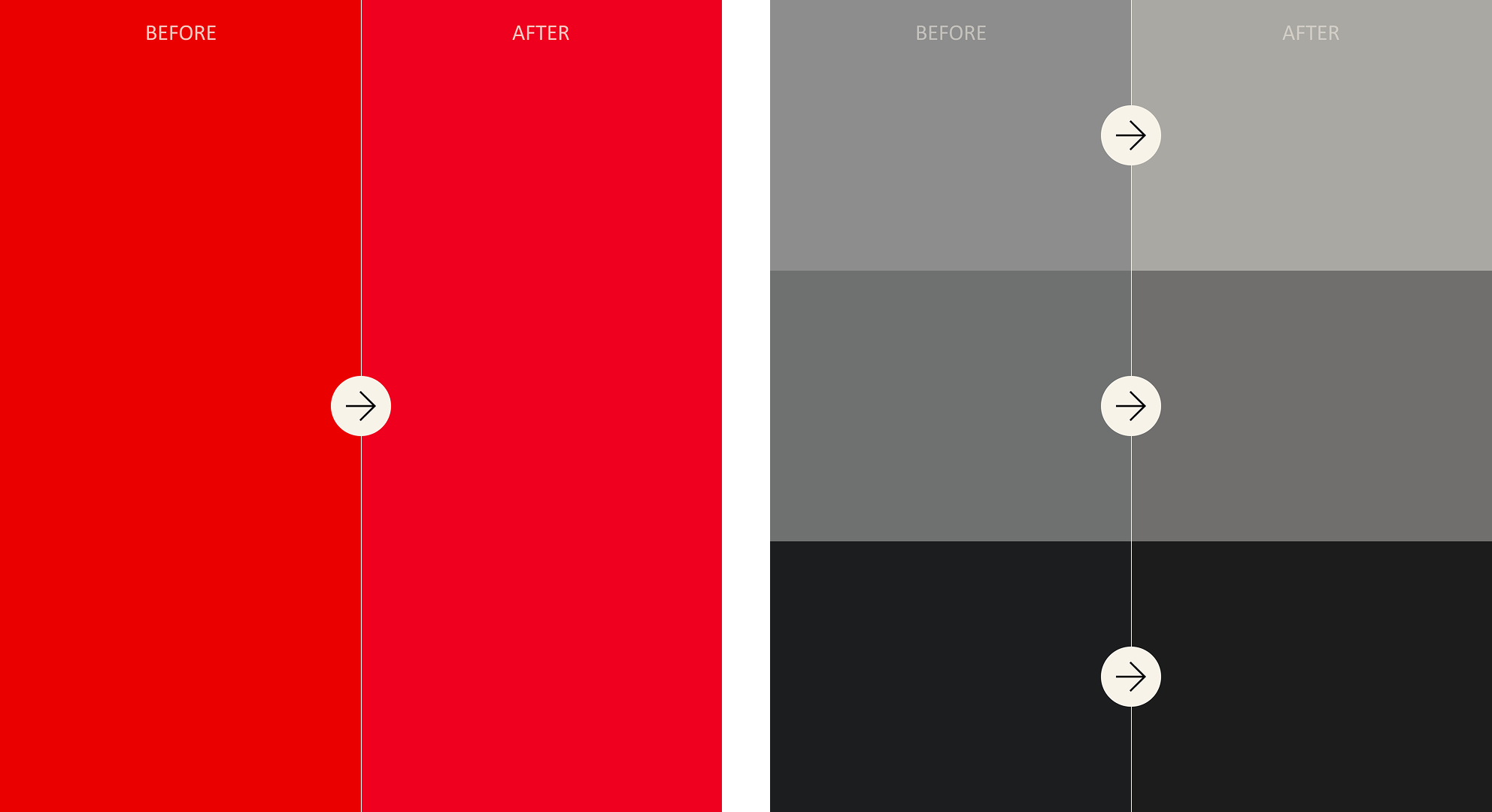 Verizonās core red and secondary colors were brightened to make the brand feel more vibrant. Improved accessibility with brighter colors that display better on digital screens, especially in dark mode.